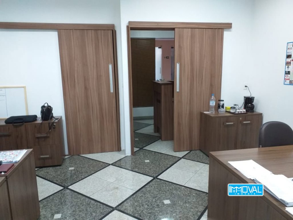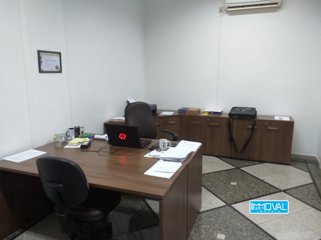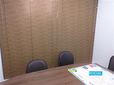 Descrição › Na sala constam os seguintes itens: 01 balcão de recepção; 04mesas de escritório; 01 mesa de reunião; 05 balcões com porta;06 gaveteiros; 03 cadeiras de rodinhas; 06 cadeiras fixas; 02 lixeiras em MDF; 03 persianas; 01 Ar Split LG com controle; 04 luminárias duplas; 01 luminária paflon (recepção).